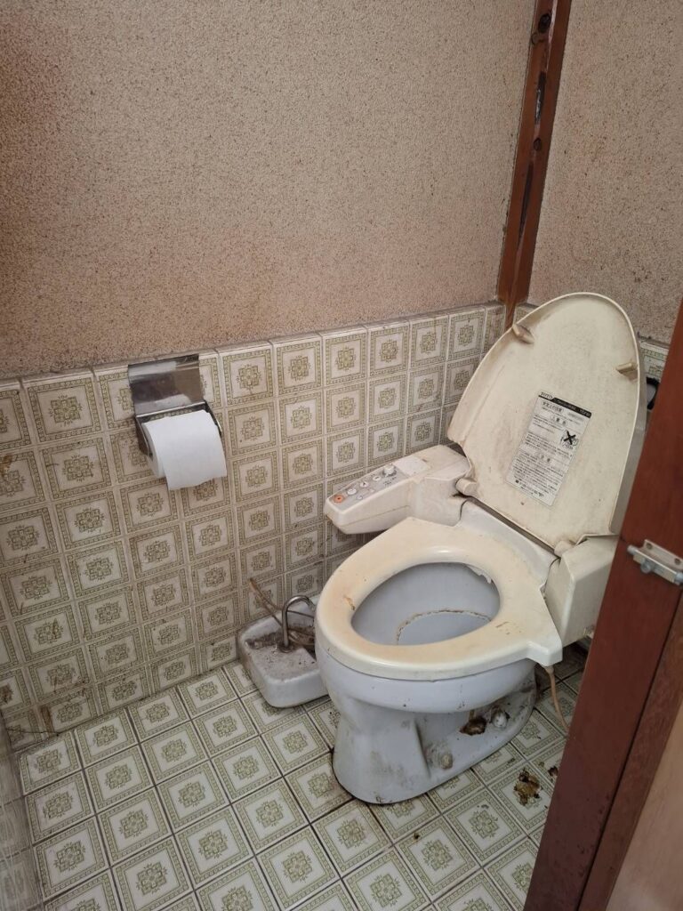 *工事内容 タイルと砂壁の段差をフラットにしてトイレフルリフォーム。