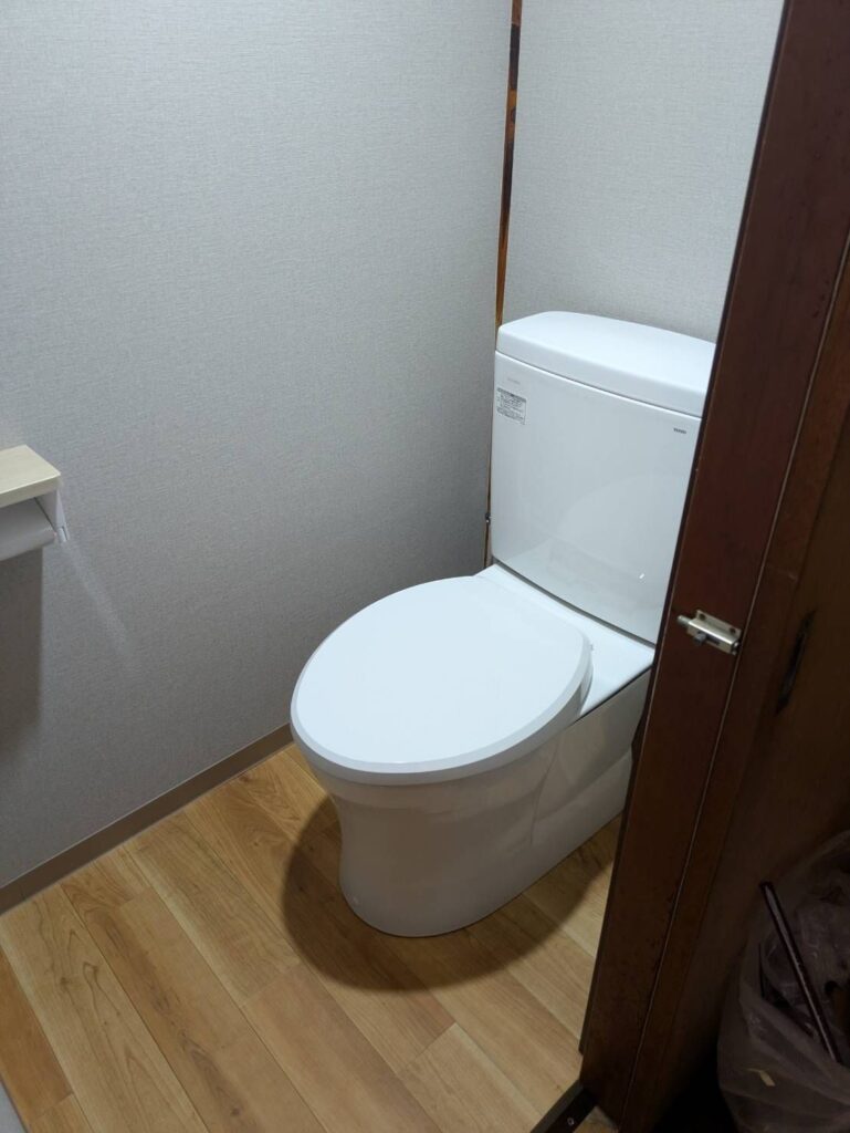 トイレはtotoのピュアレストQRお客様希望で手洗いなし、ウォシュレットなしのシンプルなトイレです。