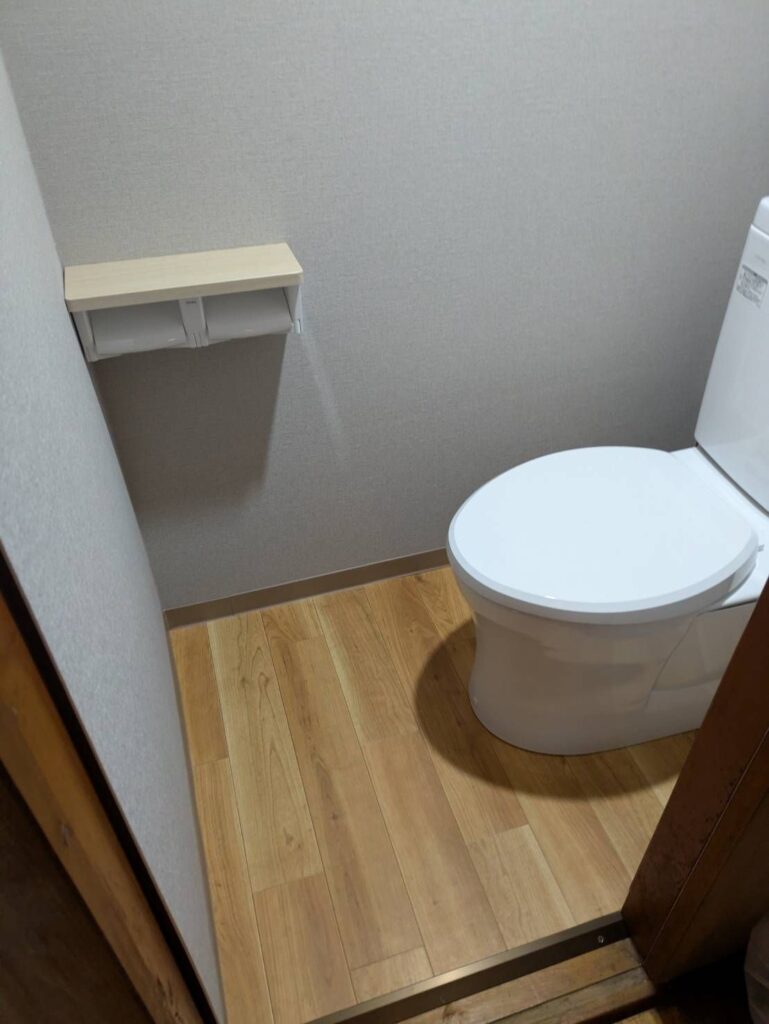 タイルと砂壁を無くし壁紙と床はクッションフロアになったことで温かみのあるトイレ空間になりました。