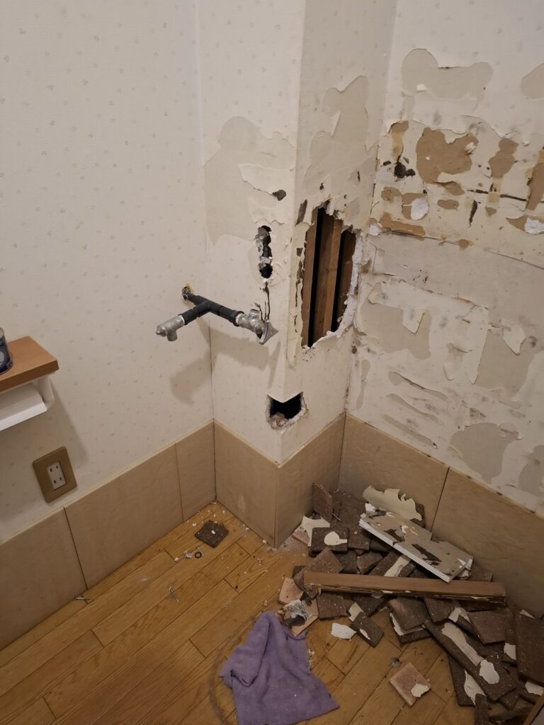 壁補修、手洗い無しトイレに交換