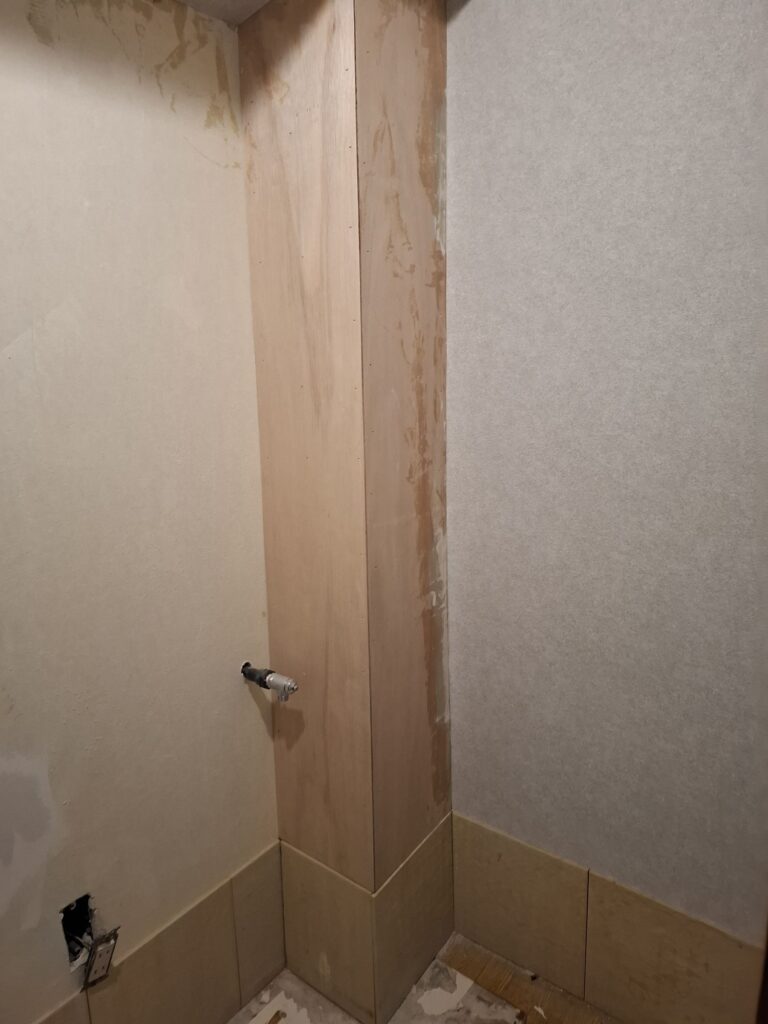 穴の空いた壁をベニアを張り補修。